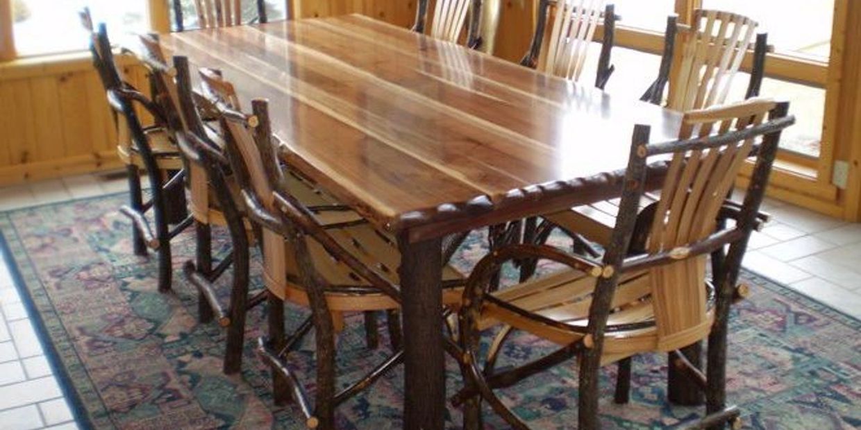 Our handcrafted cedar and pine log dining room furniture creates the rustic appeal log home, cabin and lodges thrive on. Handcrafted rustic furnishings made from cedar logs. We stock rustic cedar, pine and aspen log furniture for the bedroom, living room and dining room of your lodge, lake home, cabin or resort. The log furniture store will offers only the highest quality rustic dining room tables. Build your own rustic dining set, which includes log dining tables, log dining chairs, log benches, log hutches and other rustic log kitchen furniture and decor.